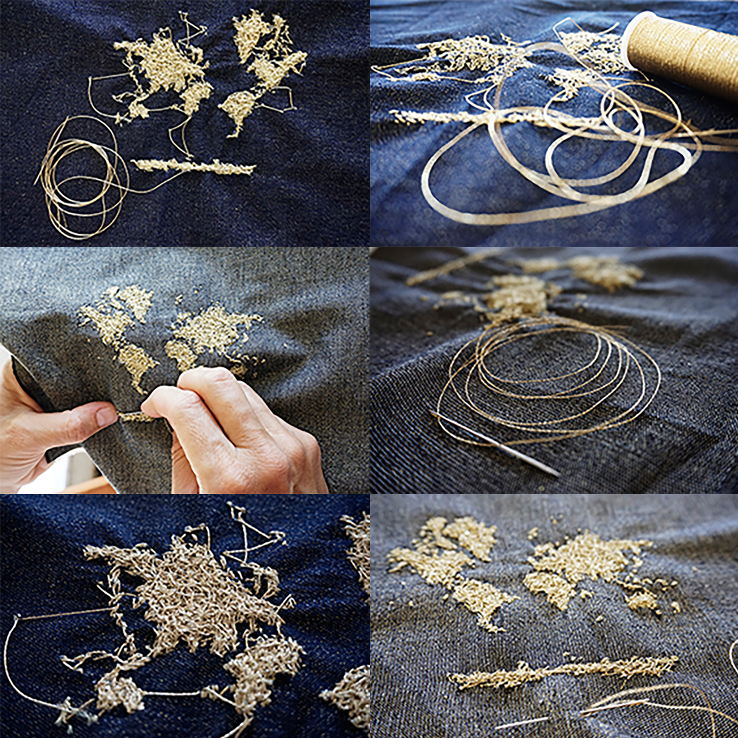 An embroidery with two sides, depicting the front and back side of the world, made with 35m golden thread on blue denim is specifically created for participating in “Passwort 4”. More info on https://passwort.kunsttempel.net/.