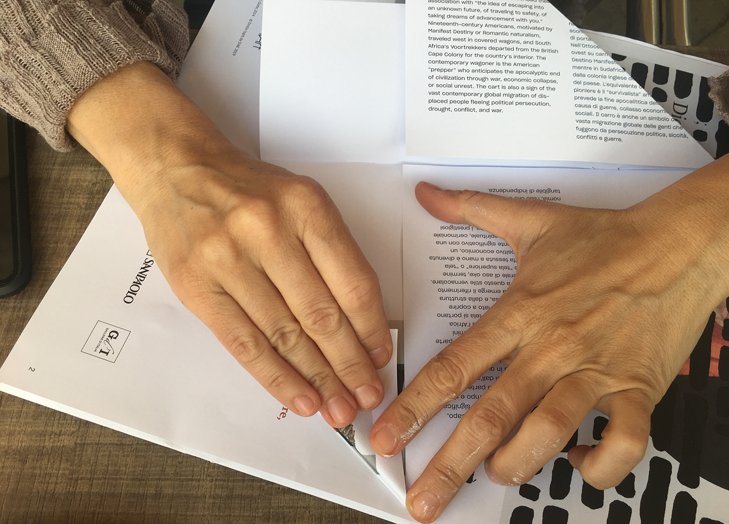 Unfold: after a long, heavily charged period where the very process of travel and human encounter and “mixing” was forbidden, the team travels and tours the legendary and crowded city and exhibition, mixing, meeting, and discussing, while at the same time collecting paper material, and recording the experience through photos, notes and releases in social media, creating thus a peculiar personal-public, experiential archive. Actually, it could be read as an attempt to communicate their very gaze, along with their experience of travel and art, through a strange artistic practice that combines the situationist dérive in the city with a poetic abandonment to the creative randomness of flâneusy.