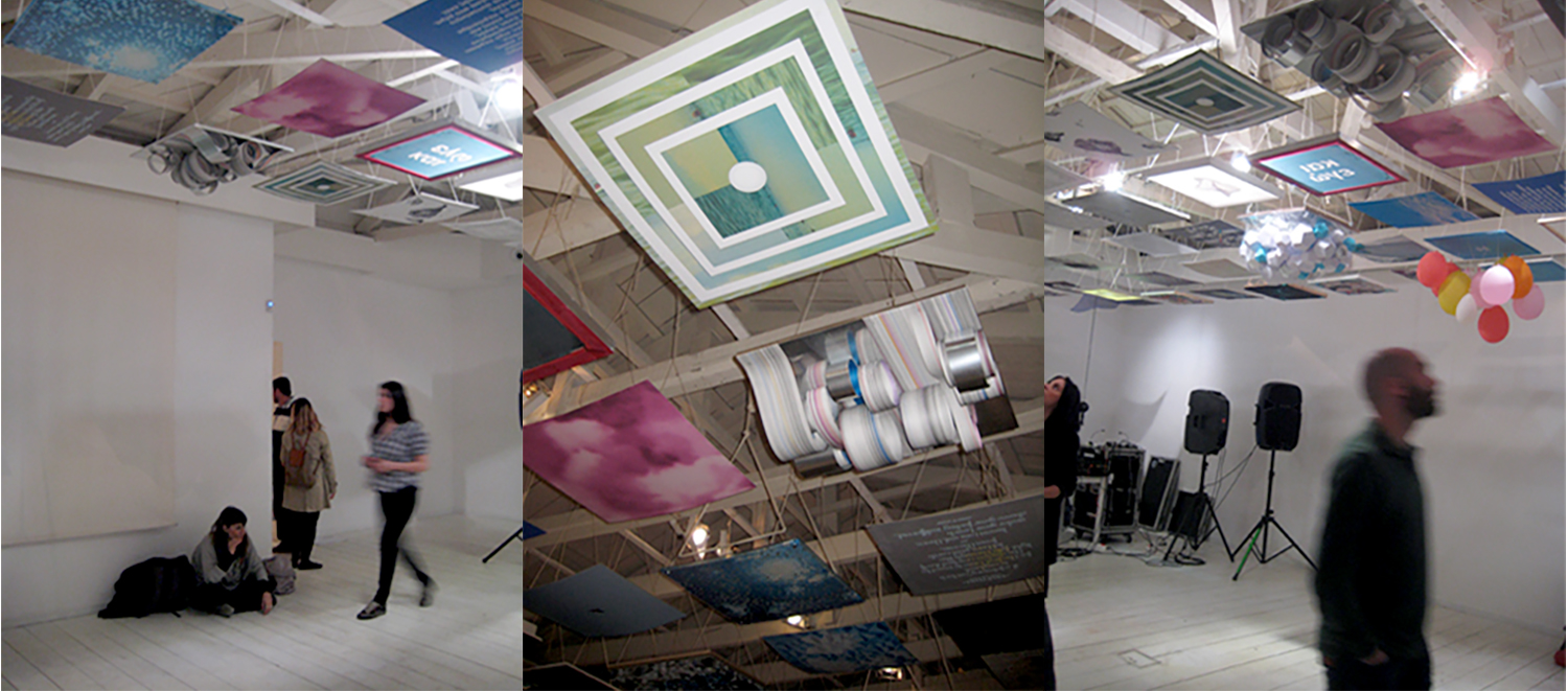 “Paraphrasing one of the most familiar expressions of the internet world (view images in high resolution), the notion of analysis is addressed to as a method of devising radical versions of reality. uP, the gesture of looking up, constitutes an action which can fundamentally fuel people’s lives and answers the request for change in the way people view and perceive the social domain. One hundred artists and creative groups from all over the world turn their gaze upwards, permeating what is directly visible and contributing to the composition of one large-scale sky/panorama which covers the ceiling of metamatic:taf’s gallery. Every artist creates a 50x50cm pixel of that sky in their own unique way and perspective. Reexamining the notion of viewing the surrounding space using the dynamics of analysis as a tool, the artworks constituting uP’s sky bring to the surface what was unperceived by the look. The new perspective is composed of images previously concealed or unshaped in a background of pixels, behind the first impression of each stimulus we come across. uP is a large, original, exciting experiment on the philosophy of synthesis and the way the distinct identity of each participating artist retains its autonomy, while at the same time constituting part of a single unique artwork. A work of art, which simultaneously devises, reforms and redetermines the relationship with one’s self and the world around us” (text from the press release).